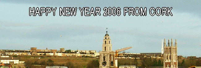 皆様、あけましておめでとうございます。2006年のアイルランド・コーク市は、昨晩の大雨からうって変わって、穏やかな朝を迎えました。少々寒いものの、青空が広がって、朝日が輝いています。 朝9時すぎ、ニチアイのオフィスの窓から撮った、コークの写真を大判でお見せいたします。コークも建築ラッシュで、段々と高い建物が増えてきて、残念ながら、ビルの4階のニチアイからの眺めも年々悪くなってきています。それでも北側は、市街地とその向こうの丘が見渡せます。上のタイトル写真の中央が、有名なシャンドンの鐘、残念ながら右にクレーンが邪魔していますが、頭に鮭を載せているというユニークな教会は、高台にあることもあって、コークのシンボルになっています。これより下は残念ながら大きくて見栄えの悪いビルが邪魔していますので、カットしました。 |